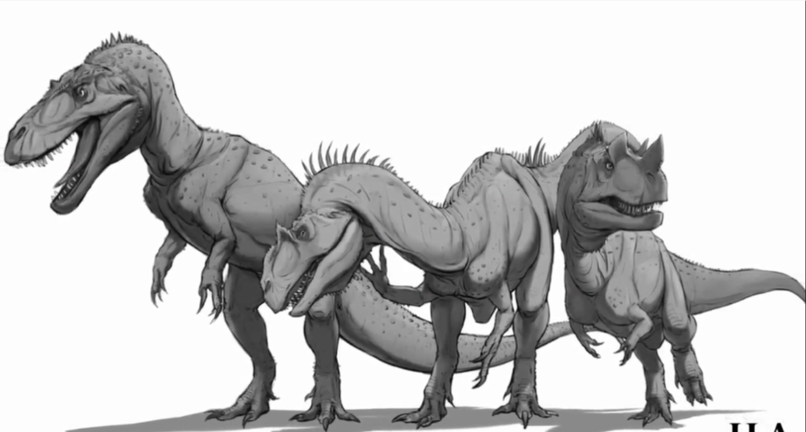 Случайно наткнулась на изображение трех высших хищников формации Моррисон (поздняя юра Северной Америки). Нечасто их рисуют вместе и еще реже - не кринжово, поэтому представляю вам, справа налево: